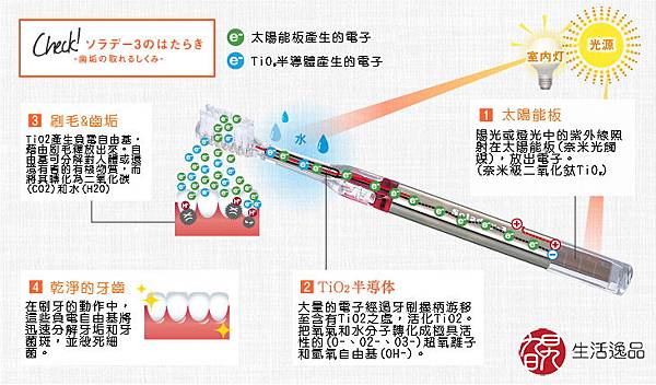 再來這樣商品是榮獲15國專利認證的日本代購熱門商品Soladey Rhythm光觸媒超音波電動牙刷,想必沒看過這樣日本代購商品的人一定一頭霧水的想著什麼是光觸媒,小編替大家解解惑,光觸媒是利用牙刷底部的太陽能板(奈米光觸媒)釋放出電子經由牙刷頭的TiO2半導體透過水傳導出殺菌分子,這些分子能分解牙垢和牙菌斑,能有效的將細菌殺光光,小編真的是太小看這支牙刷了,難怪能獲得多國專利,也是大家搶翻天的日本代購熱門商品