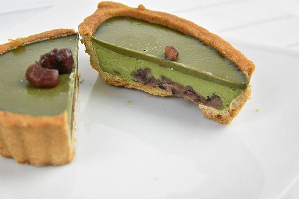 【抹茶紅豆花瓣乳酪塔】抹茶濃厚的乳酪配上底層嚴選熬煮蜜紅豆,微甜滋味帶有茶香韻味,彷彿置身在日本道地抹茶甜點店。