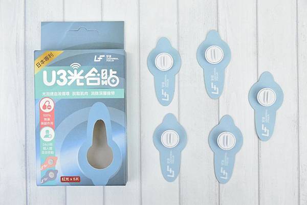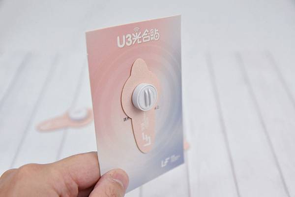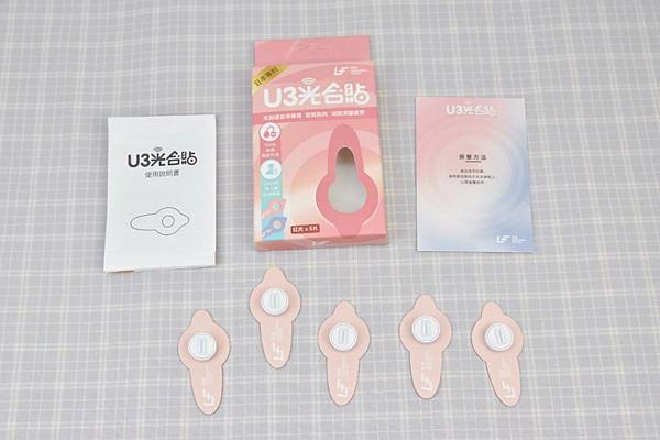 這是藍色款,也是非常粉嫩的顏色,讓人看了非常舒服,也沒有一般醫療相關器材冷冰冰的感覺。內容物一樣有5個光合貼、一份說明書和一張收納板。