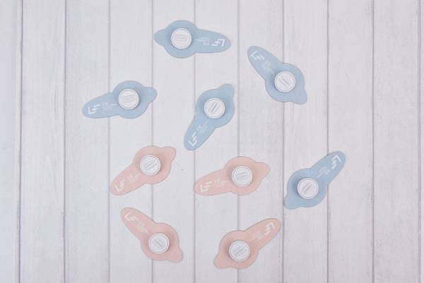 首先,我們看到的是粉紅款的光合貼。光合貼一共有兩款,功能一樣,主要都是在解放肩頸不適,只是顏色可以選擇。我們現在看到的這款是可愛的粉紅款式,每一組裡面都附有一份說明書、5個光合貼,以及一張收納板。