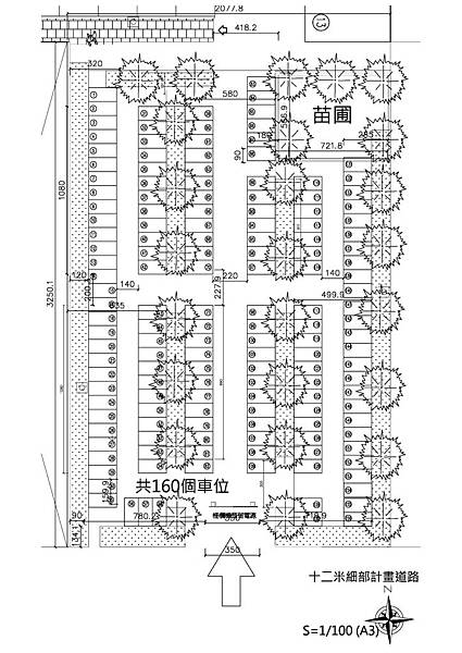 因為這塊土地,可能過幾年要蓋房子,透過最節省的房屋修繕工程方法,打造臨時性的機車停車場,總共規劃160個車位,及規劃一塊苗圃。