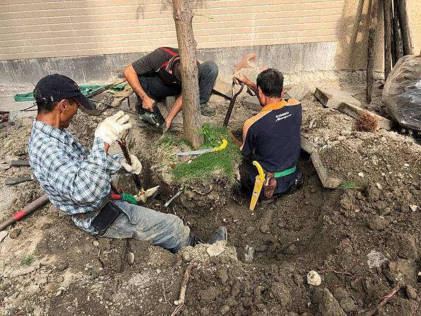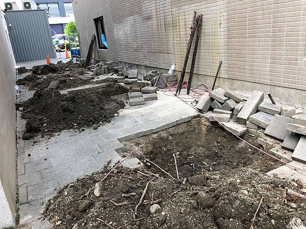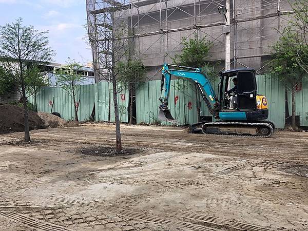因為樹木旁邊是用壓路機是壓不到的,這次房屋修繕工程,使用挖土機將地面整平。
