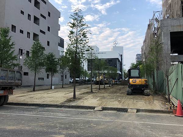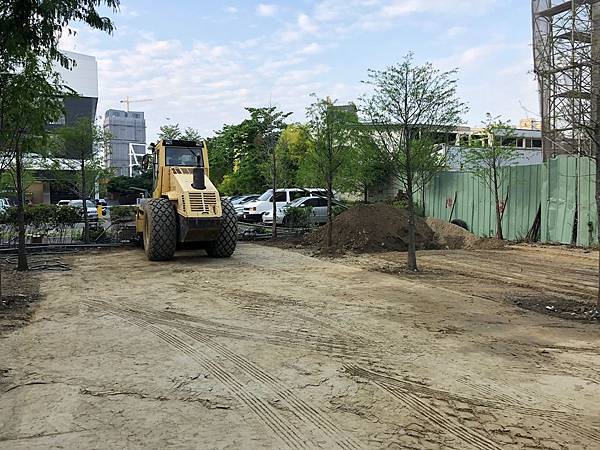 將落雨松種植完成後,由於混凝土沒有很厚,需要設計10公分,把土地壓密實一點,透過10吋壓路機,讓土地密實。