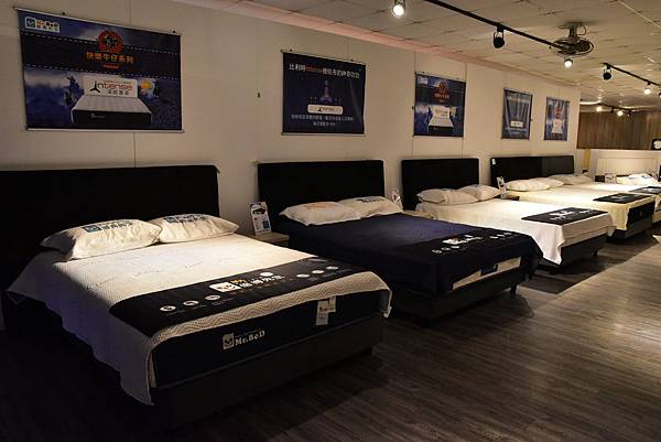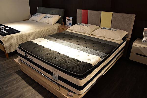 一開始看見外面招牌寫著展售中心,在我印象中展售中心就是一個很冷清、簡陋的擺設商品的地方…結果一進到倍得倉庫的展售中心,就是:哇~好美~每張床都想躺躺看!燈光打在床鋪上面,給人一種溫暖舒適的感覺~感覺都在跟我說:來躺躺看!躺我躺我!這類的~倍得倉庫的床墊品牌有好幾種,每一個品牌的床墊都分區分得很清楚,完全不會讓人搞混,照片上的床墊就是今天要介紹給大家的品牌──倍得先生!
