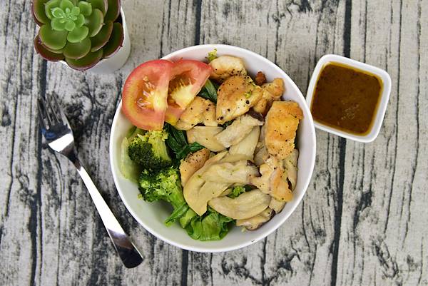 料理二:營養均衡的油醋雞肉杏鮑菇溫沙拉,色香味俱全SO EASY