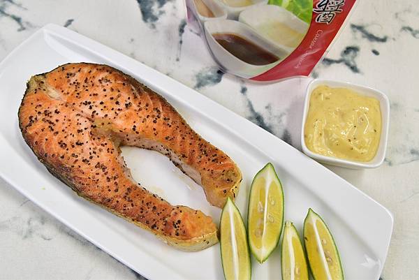 料理三:香煎鮮甜鮭魚佐凱撒醬,頭好壯壯一百分